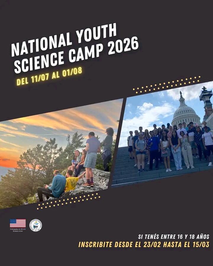 La Embajada de Estados Unidos en Argentina extiende su invitación a todos los estudiantes de entre 16 y 18 años interesados en la ciencia a postularse para el National Youth Science Camp 2026. El campamento se llevará a cabo del 11 de julio al 1 de agosto de 2026, en el Campamento Pocahontas en Virginia Occidental, Estados Unidos.